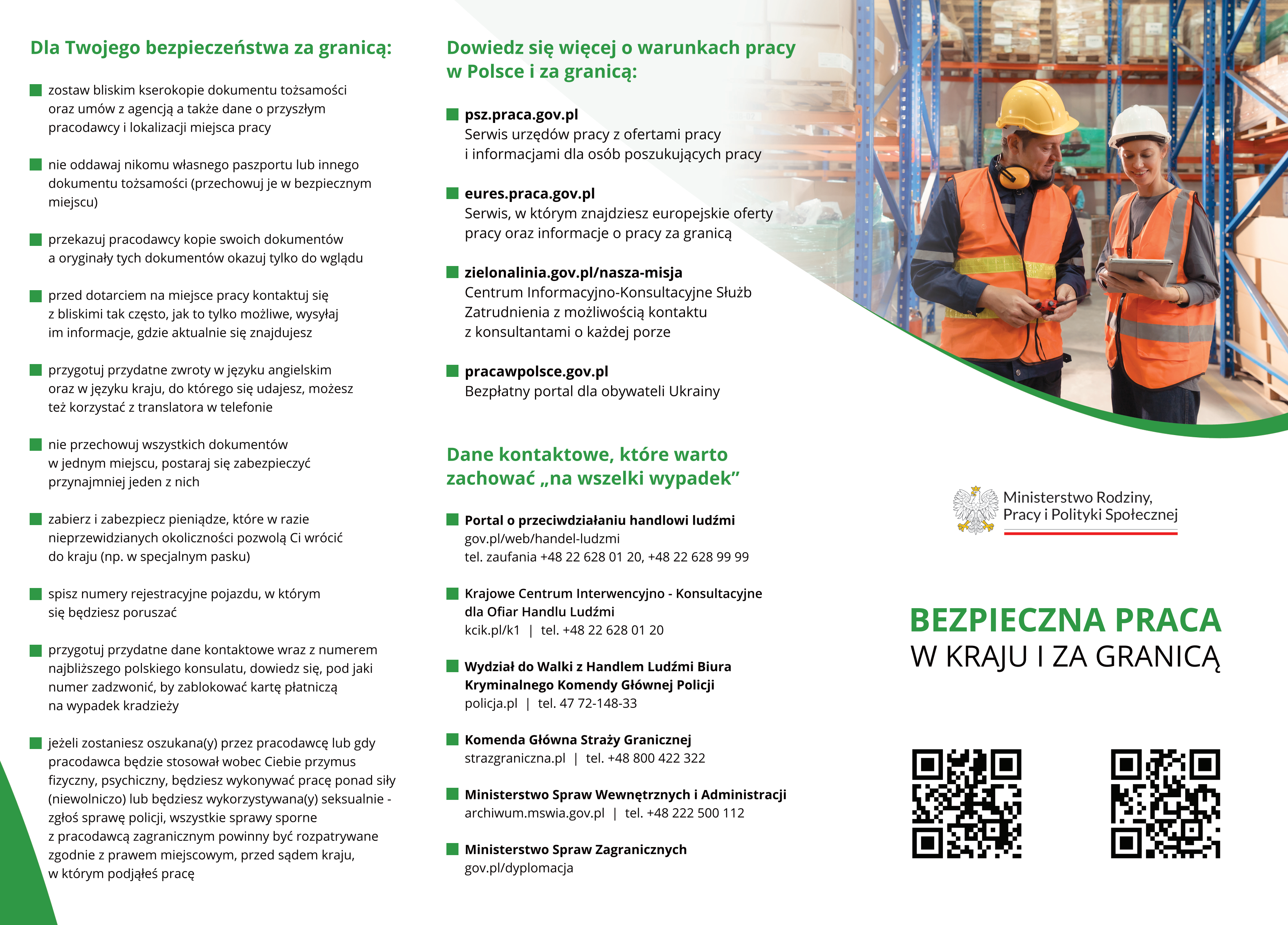 Materiały informacyjne dotyczące bezpiecznej pracy w kraju i za granicą