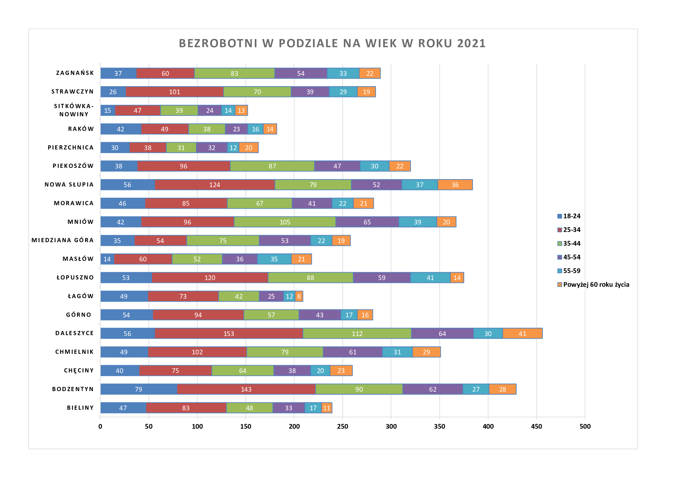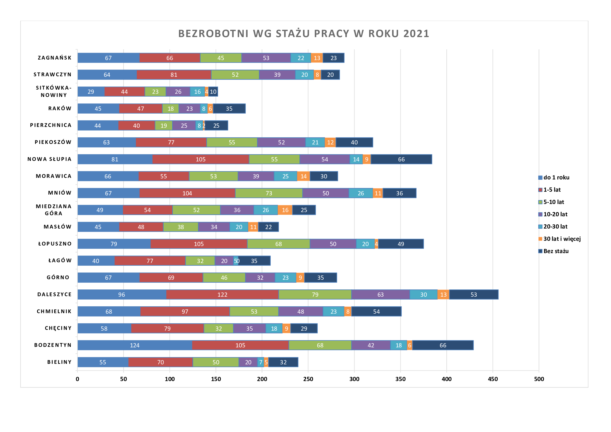 Statystyki - Stan bezrobocia w gminach 2021 - Powiatowy Urząd Pracy w Kielcach