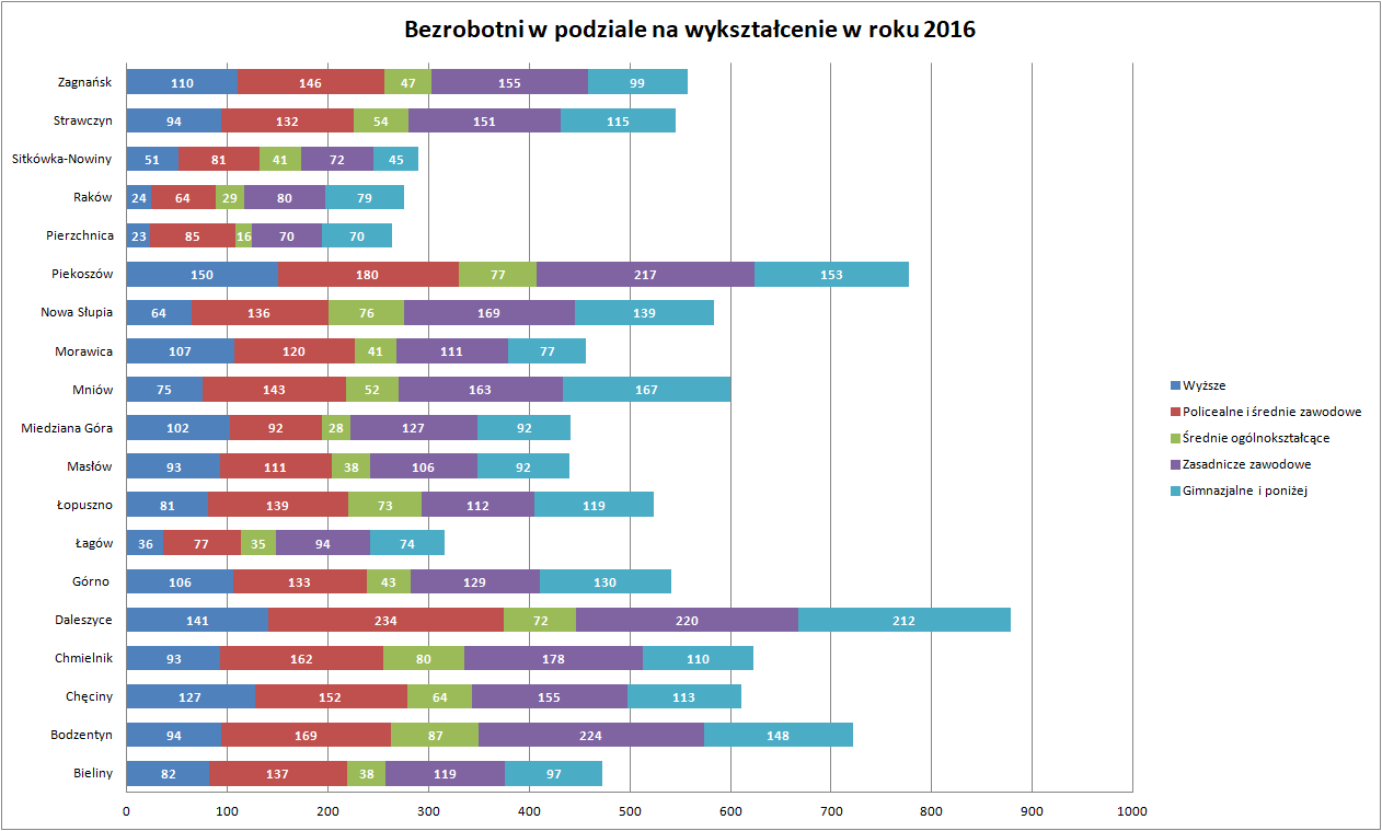 Statystyki - Stan bezrobocia w gminach 2016 - Powiatowy Urząd Pracy w Kielcach