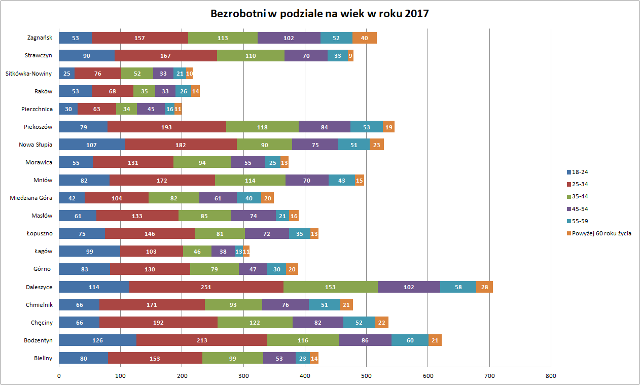 Statystyki - Stan bezrobocia w gminach 2017 - Powiatowy Urząd Pracy w Kielcach