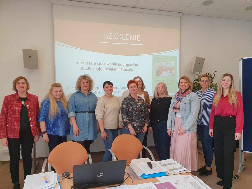 W dniach 24-25 marca 2025 r. w Wojewódzkim Urzędzie Pracy w Białymstoku odbyło się szkolenie doradców zawodowych z powiatowych urzędów pracy województwa podlaskiego, zorganizowane i przeprowadzone przez doradców zawodowych z Centrum Informacji i Planowania Kariery Zawodowej w Białymstoku. Uczestnicy szkolenia mieli okazję zapoznać się z wybranymi narzędziami i ćwiczeniami, zebranymi w podręczniku „Poznaję. Działam. Pracuję”, przygotowanym na zlecenie Ministerstwa Rodziny, Pracy i Polityki Społecznej.